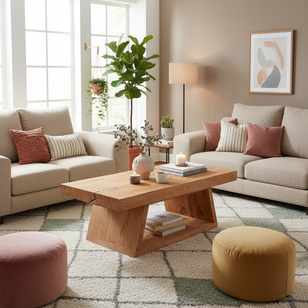 Znajdź meble i dodatki, które nadadzą salonowi przytulny, spójny charakter.