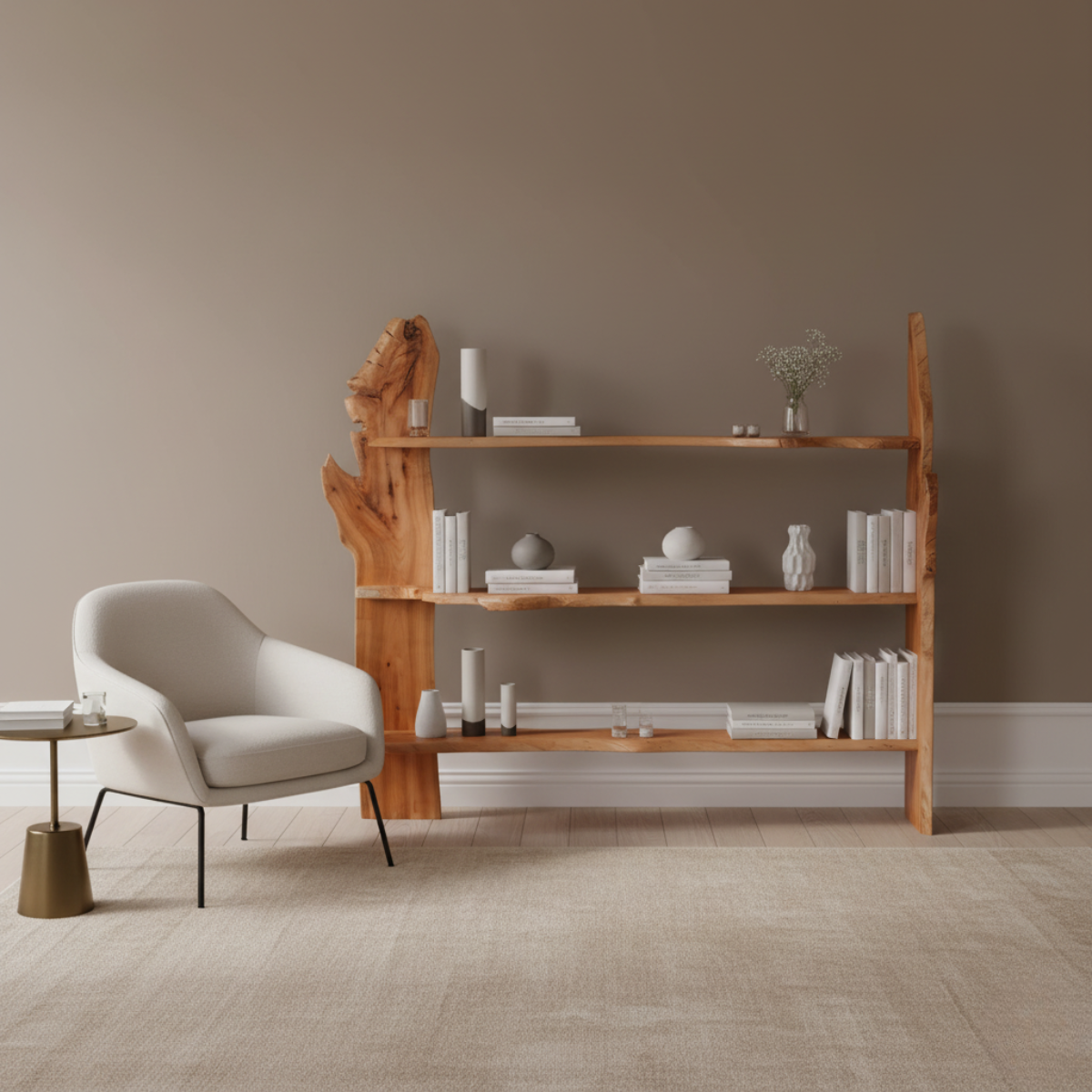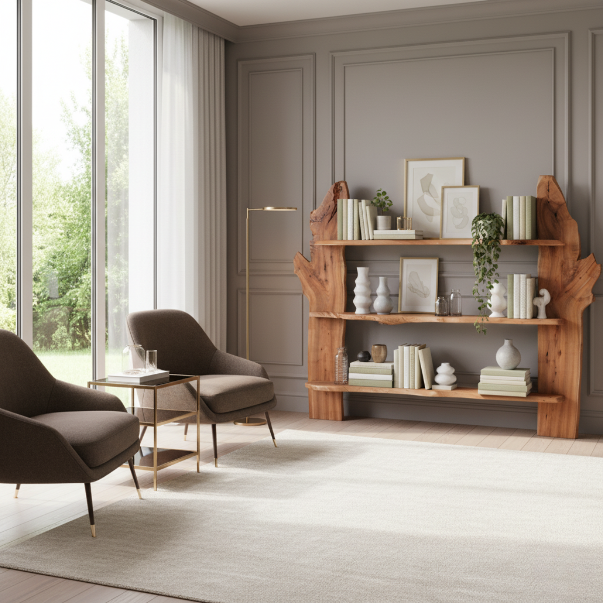 To mebel, który nie tylko pełni funkcję praktycznego miejsca do przechowywania książek, dekoracji czy roślin, ale również staje się artystycznym elementem wystroju wnętrza. Dzięki swojej oryginalnej formie i solidnemu wykonaniu, regał doskonale wpisuje się w aranżacje inspirowane naturą, styl rustykalny, loftowy czy eklektyczny, tworząc niepowtarzalną przestrzeń w Twoim domu.